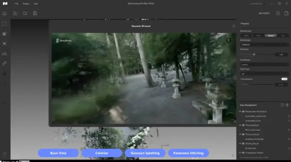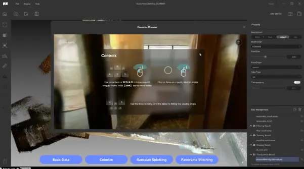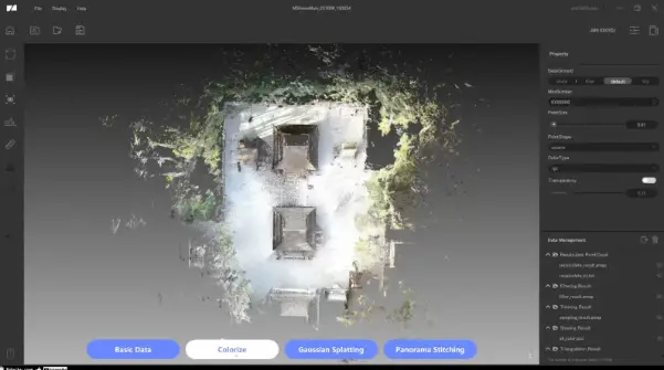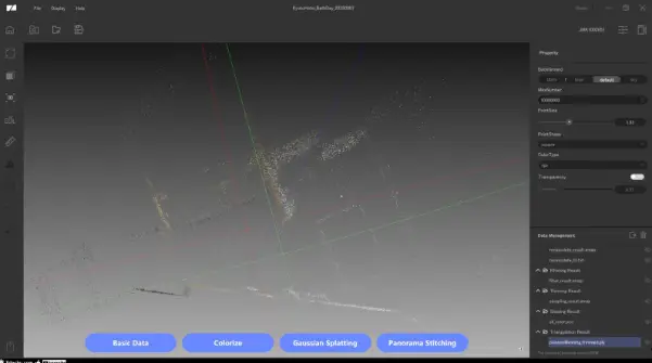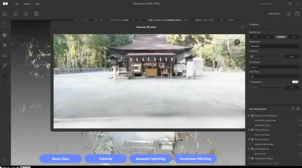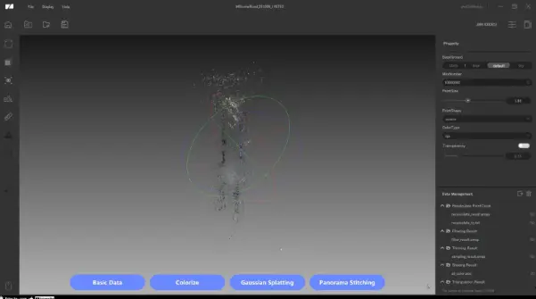 「RayStudio」では「点群データの構築」「点群の編集」「着彩」「ガウシアンスプラッティングの生成」などが可能です。