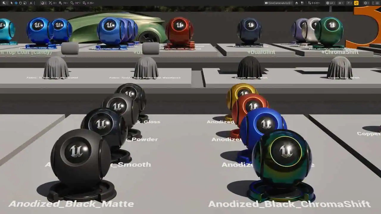 Epic GamesからUnreal Engine5の次世代マテリアルシステム「Substrate」で構築された自動車ビジュアライズ向け280種のマテリアル「Automotive Substrate Materials」がFab上で無料公開されました!