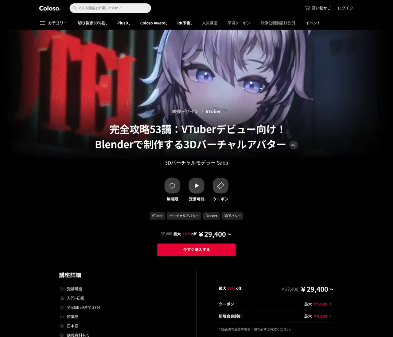 Colosoで現在公開中のVTuberアバター制作解説フルチュートリアル講座『完全攻略53講:VTuberデビュー向け!Blenderで制作する3Dバーチャルアバター』を受講いたしましたのでその感想を語りたいと思います!
