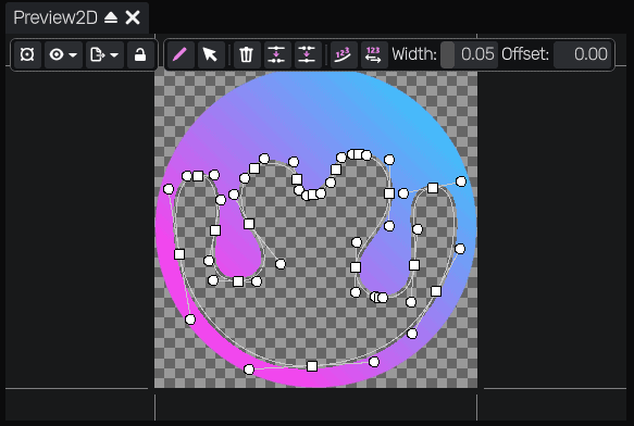 - 2D プレビュー パネルにてポリゴン/ポリライン、スプライン、ラティス、ピクセルなどの幾何学的パラメータを編集可能に