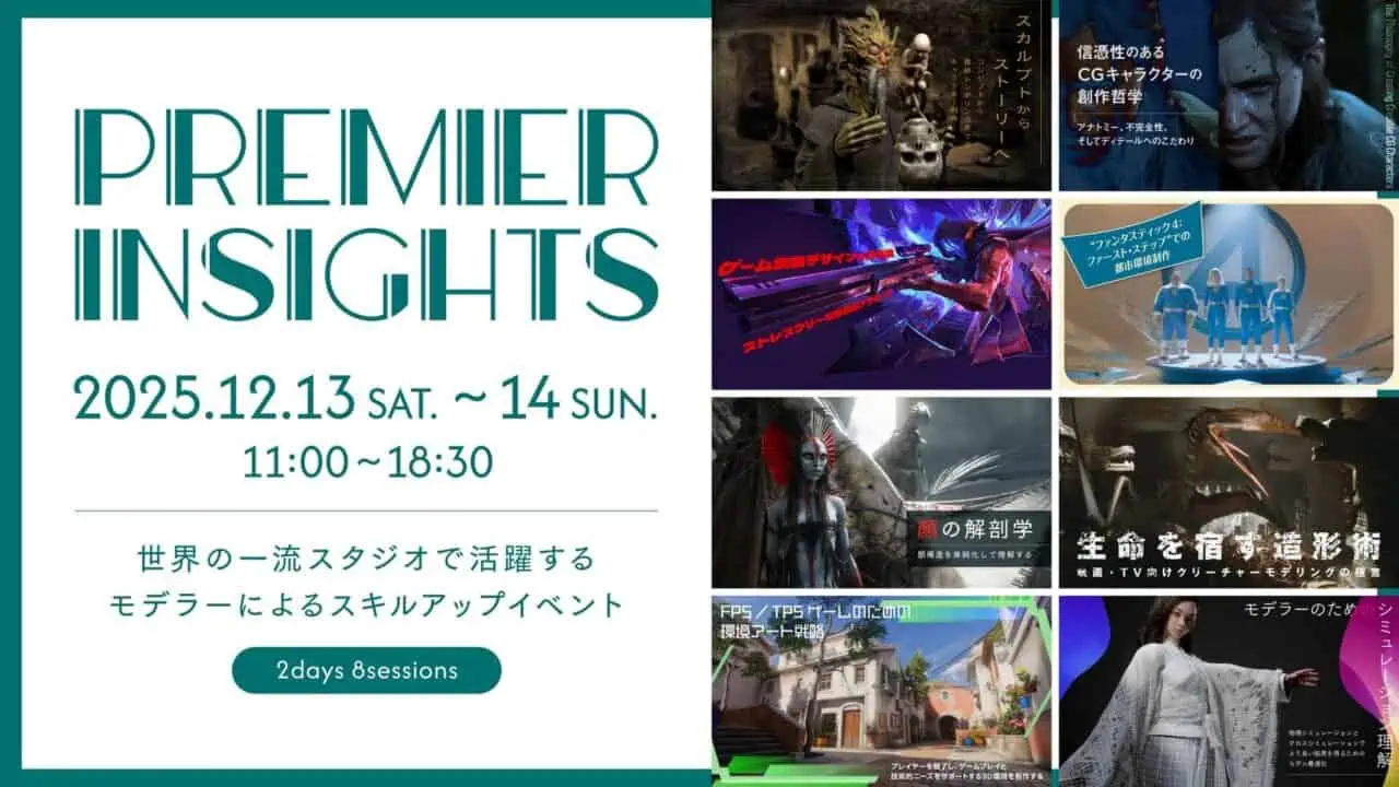 2025年12月13日(土)と14日(日)にCGWORLDによる、世界の一流スタジオで活躍するアーティストを迎えて講演いただくスキルアップイベント『Premier Insights Vol.2』が開催!第2回は「モデリング」をテーマに合計8セッションがオンライン配信されます!