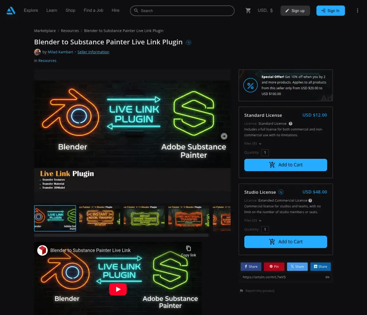 「Blender To Substance Painter Live Link Plugin」はSuperhiveやArtstationにて$12で販売中!