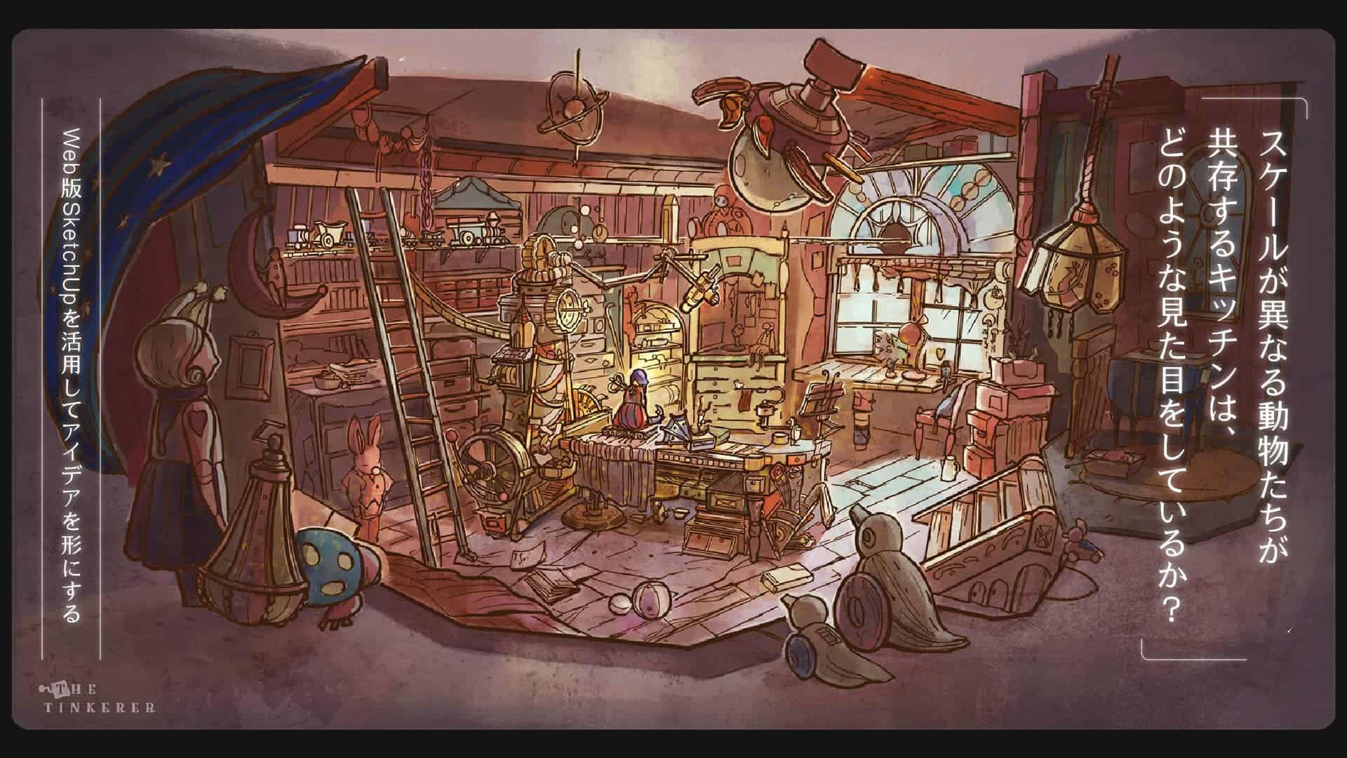 15:00~16:30 スケールが異なる動物たちが共存するキッチンは、どのような見た目をしているか? ~Web版SketchUpを活用してアイデアを形にする~ コンセプトアーティスト:なお 氏 Web版SketchUpを活用し、アイデアからコンセプトスケッチへと仕上げる過程を解説。「大きさが異なる動物たちが料理するための快適なキッチン」が課題。彼らがどのように空間を利用するのかを想像しながら、魅力的なインテリアの可能性を探求。 セッション詳細 | 17:00~18:30 Unreal Engineを活用したコンセプトアートの作成 ~3Dモデルを使用したレイアウト構成とリアルタイムエンジンによる表現手法~ コンセプトアーティスト/コンセプトモデラー/3D背景アーティスト:Guntamix(長谷川隆道) 氏 Unreal Engineを中心とした効率的な制作フローを学びながら、3Dモデルと2Dを交互に活用する新しい作業手法を解説。過去の作品をリメイクするプロセスを通じて、リアルタイムエンジンを活用した表現手法や、柔軟で質の高い絵作りのアプローチを習得することを目指す。 セッション詳細 |