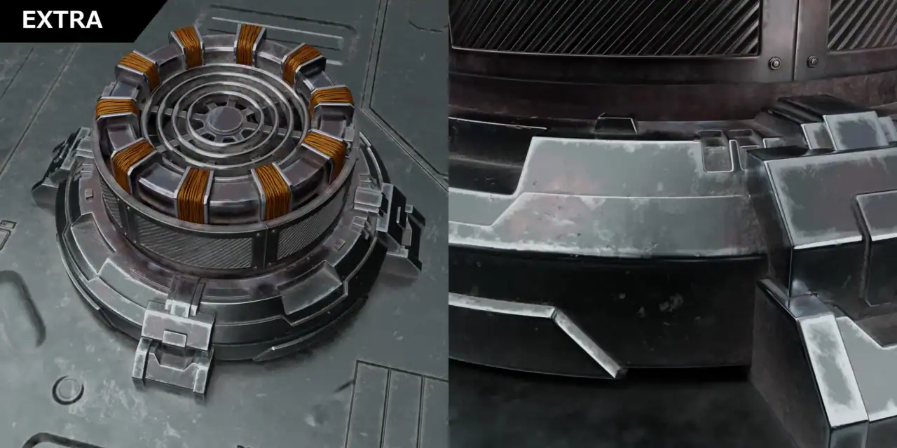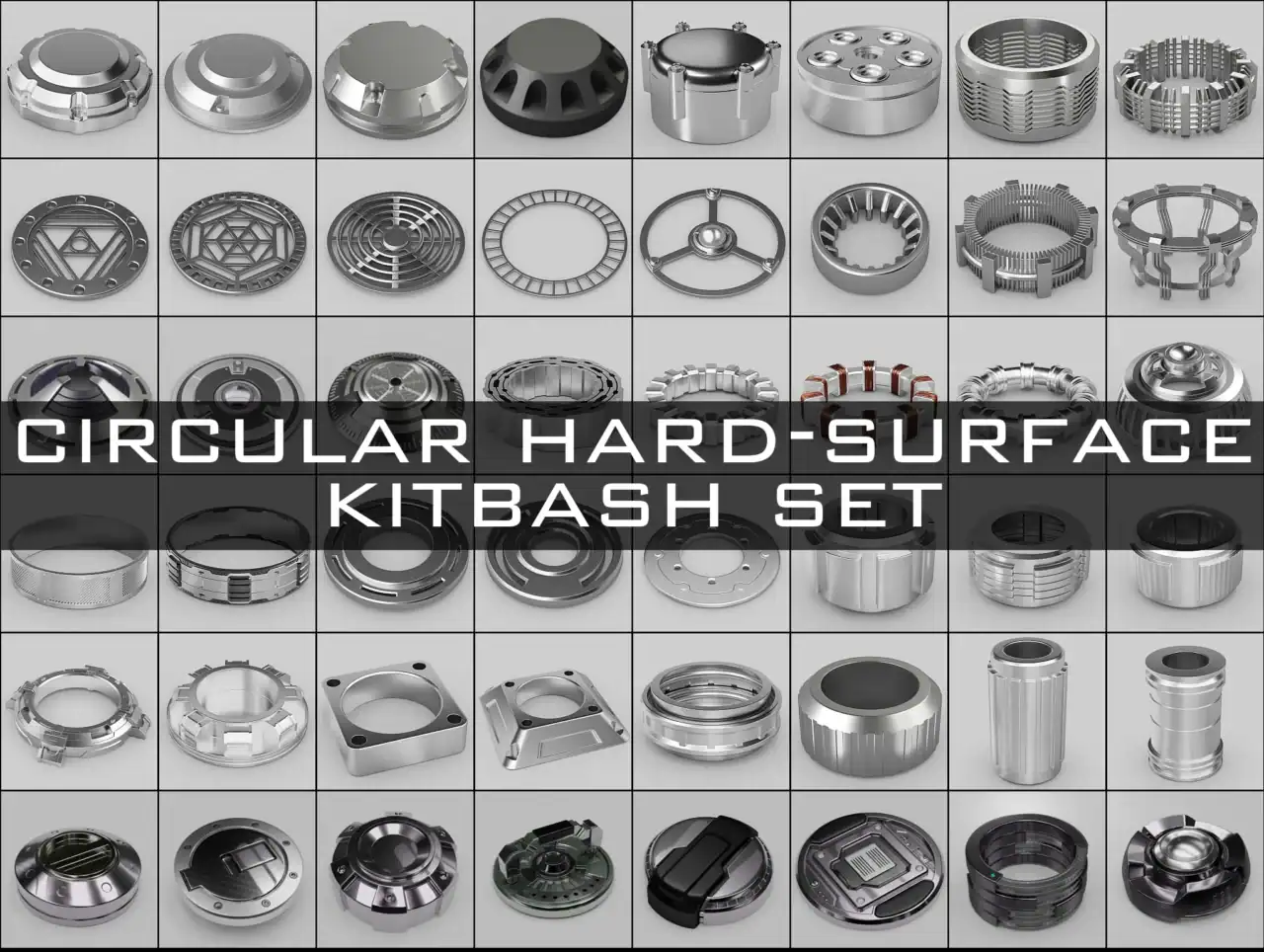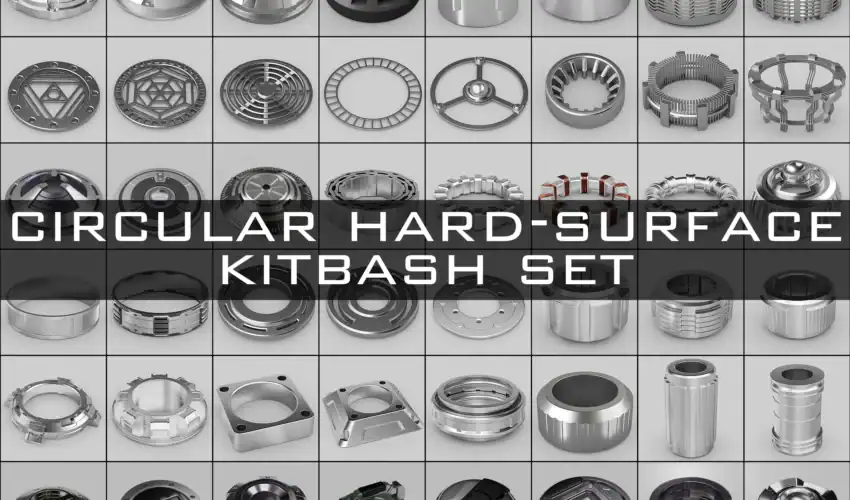 このパックには、サブディビジョンワークフロー向けに設計された48個の円形ハードサーフェス・キットバッシュモデルが含まれています。