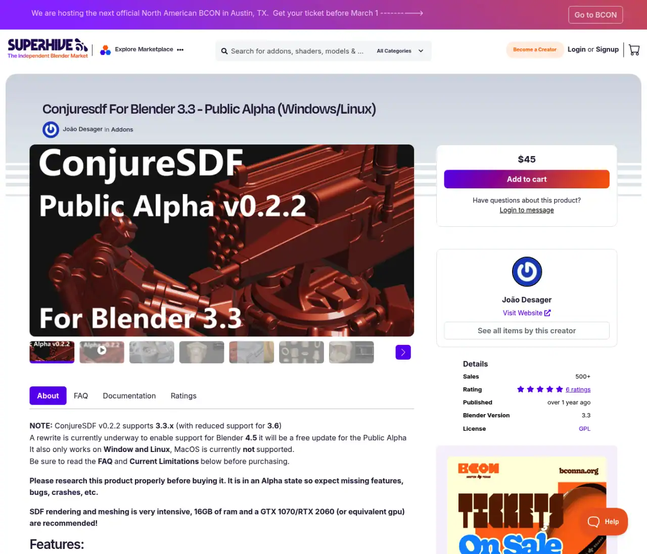 「ConjureSDF」はWindosとLunux版のBlender 3.3.x系に対応。Macは非対応なのでご注意ください。