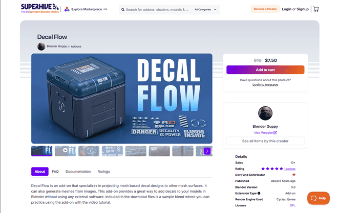 「Decal Flow v1.0」はSuperhiveにて$10で販売中!セール中は$7.50で入手可能です!