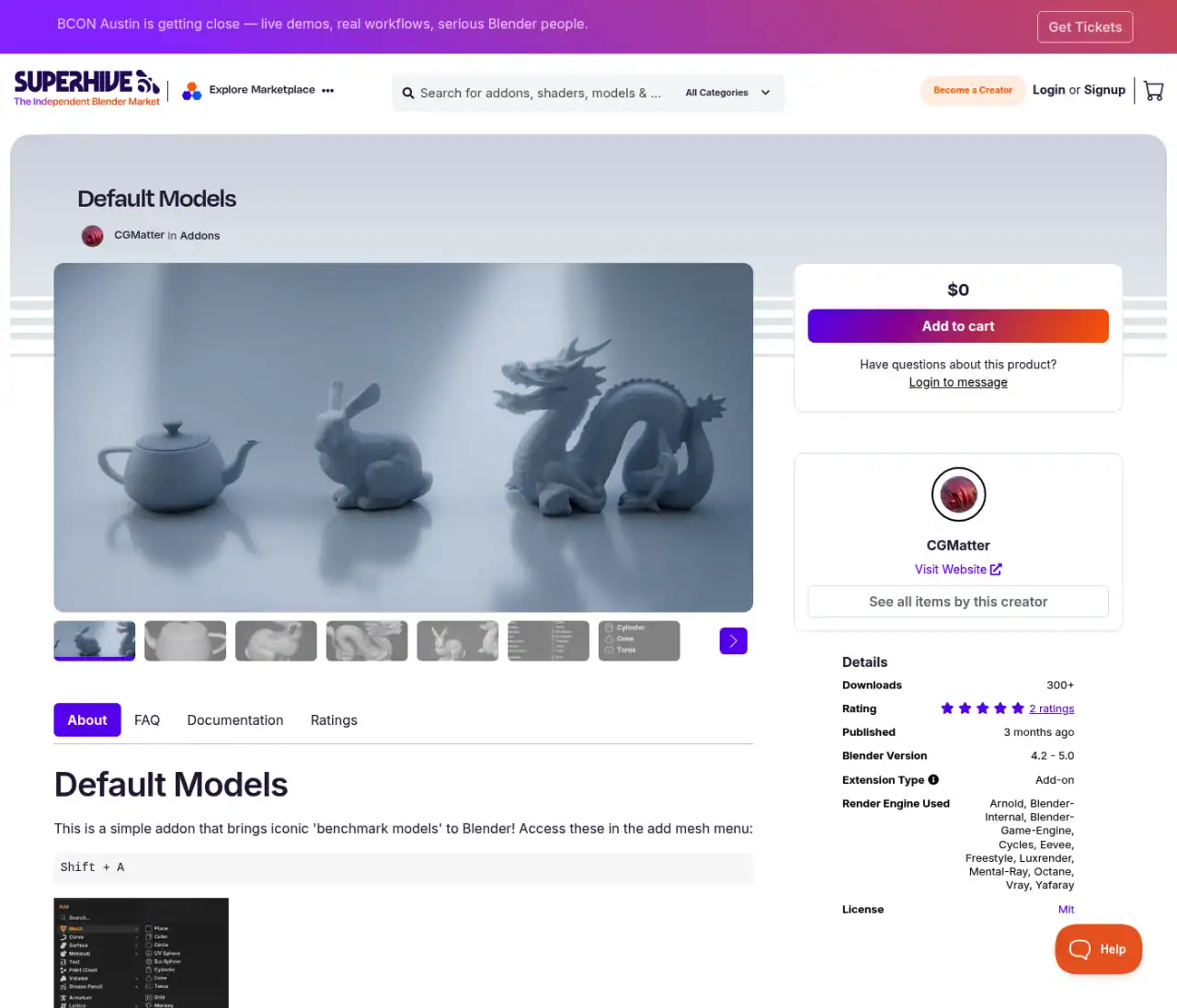 CGMatterがCG研究でも定番のティーポット&ウサギ&ドラゴンのモデルをモデルの追加メニューからインポート可能にする無料のBlenderアドオン「Default Models」を無料公開しています!