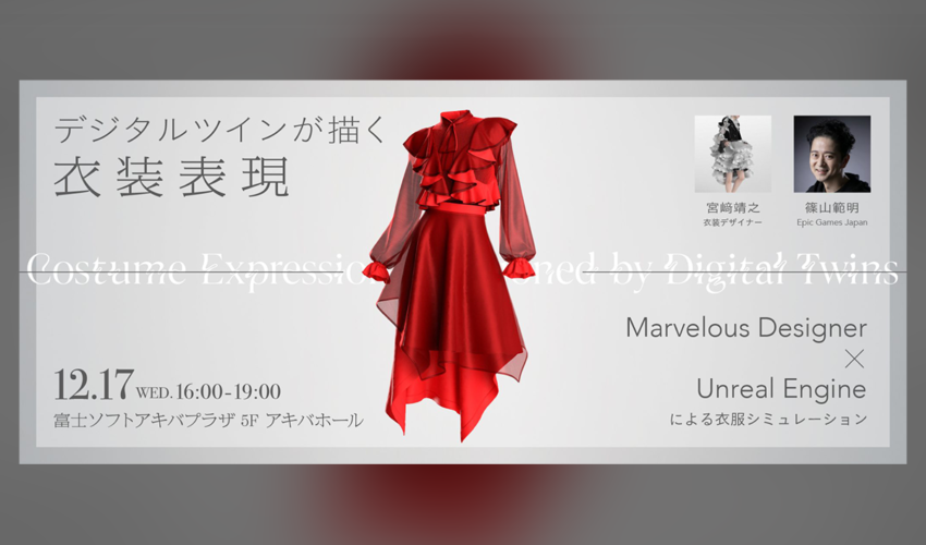 | イベント名 | デジタルツインが描く衣装表現 Marvelous Designer × Unreal Engineによる衣服シミュレーション |
