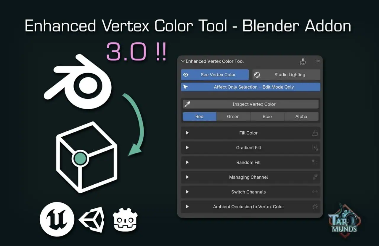 TAで環境アーティストのKostia Perry氏による、Blender向け頂点カラーツールアドオン「Enhanced Vertex Color Tool」のv3.0がリリースされました!無料でダウンロード可能です!