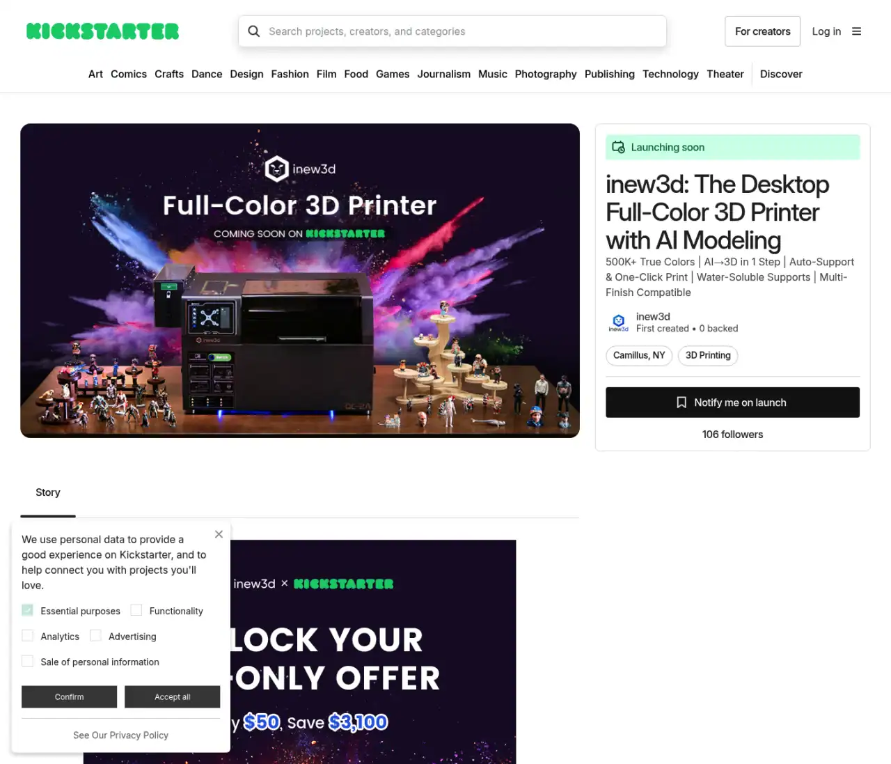 inew3dから、デスクトップ向けフルカラー3Dプリンター「QC2A」が発表されました!近日Kickstarterにてクラファンが開始されるそうです。