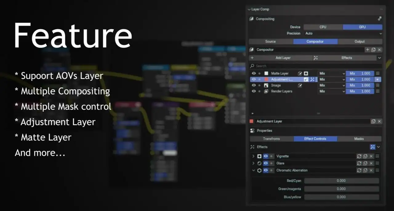 KENKEN氏による、After Effectsを意識したとされるBlender向けのコンポジットアドオン「LayerComp」がExtensionsに登場!