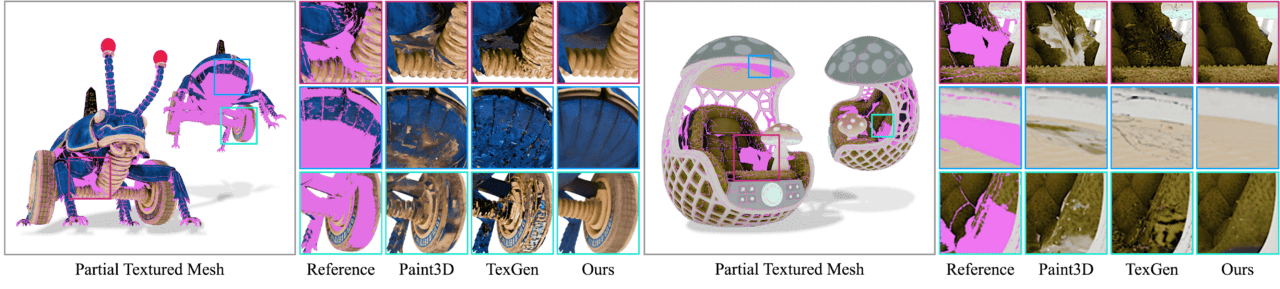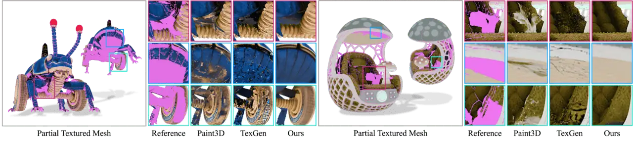 - 巨大ビュー合成モデルで欠損部を補完 → シームレスなUV生成が可能
