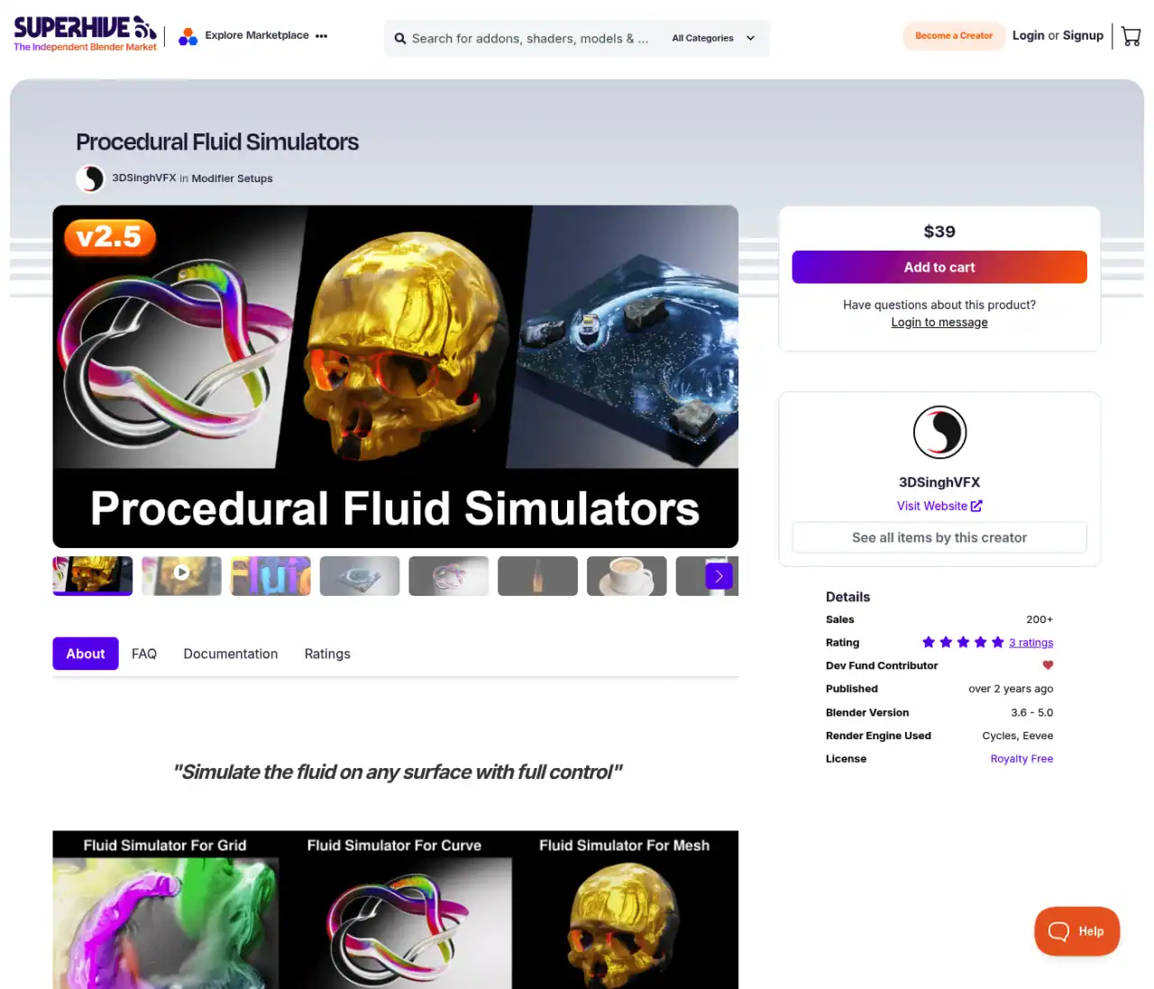 「Procedural Fluid Simulators v2.5」はSuperhiveやGumroadにて$39で入手可能です!
