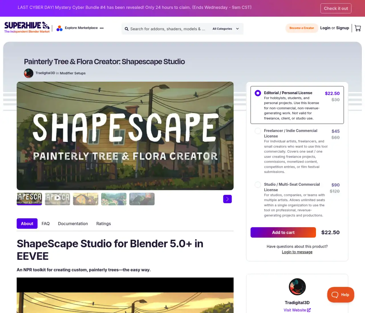Cody Gindy&Tradigital3D(Alan Wyatt氏)による手描き感溢れる植物などを手軽に制作可能なBlender用NPRツールキット「ShapeScape Studio – Painterly Tree & Flora Creator」がリリースされました!