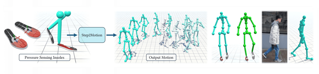 マックス・プランク情報学研究所、ザールラント情報学キャンパス、カタルーニャ工科大学の研究者らによる、マルチモーダルインソールセンサー(圧力+IMU)から人間の歩行モーションを再構築する技術「Step2Motion: Locomotion Reconstruction from Pressure Sensing Insoles」のご紹介!Eurographics 2026技術論文!