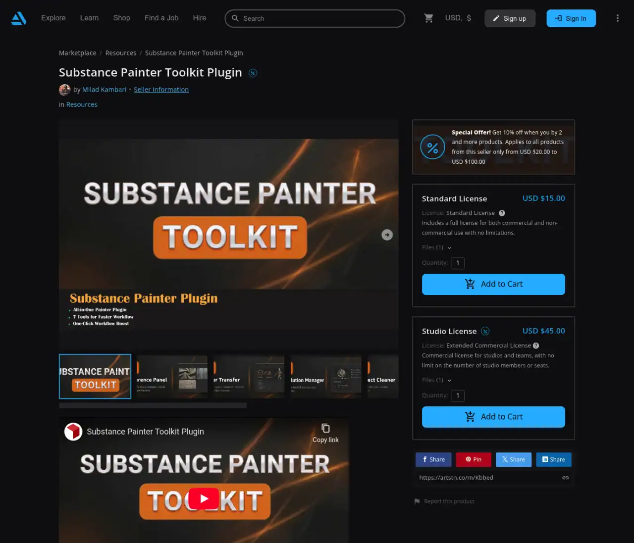 「Substance Painter Toolkit Plugin」はArtstationにて$15で販売中です!