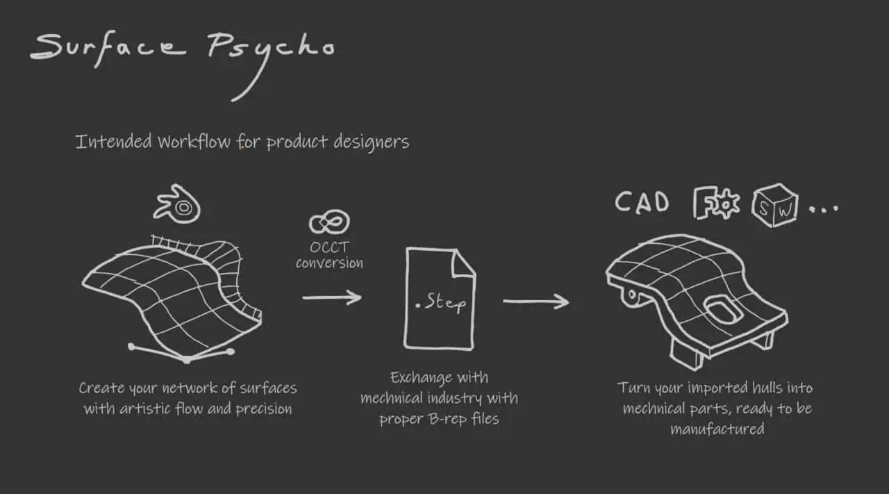 増え続けるGeometryNodesモディファイアのセットを通して、SurfacePsychoはリアルタイム編集による真の非破壊NURBSモデリングを可能にします!Surface Psychoは製品デザインのサーフェシングのためのBlenderアドオンです。2023年5月から活発に開発され、現在はアルファ版で、.STEPのインポートとエクスポート、非破壊NURBSワークフローをBlenderにもたらします。長期的なゴールは、誰でもアクセスできるフルクラスのサーフェシングツールです。
