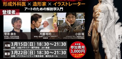 片桐裕司氏、小田隆氏、菅原康志氏による「トークセッション 燃えよ美術解剖学 形成外科医×造形家×イラストレーター ーアートのための解剖学入門ー」が大阪と東京で開催されます。
