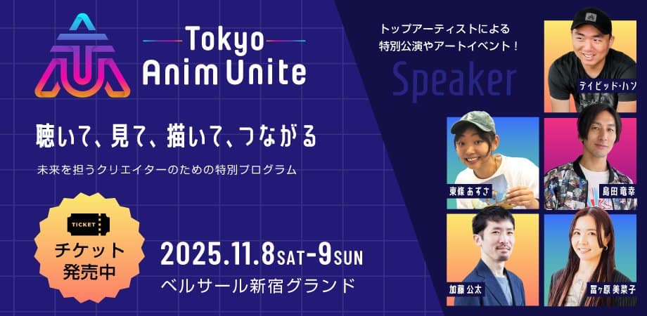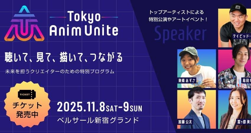 映像やゲームなどのエンタメ制作に携わるすべての人に向けた大イベントの第2回「Tokyo Anim Unite 2025」が2025年11月8~9日の2日間 ベルサール新宿グランドコンファレンスセンターにて開催されます!
