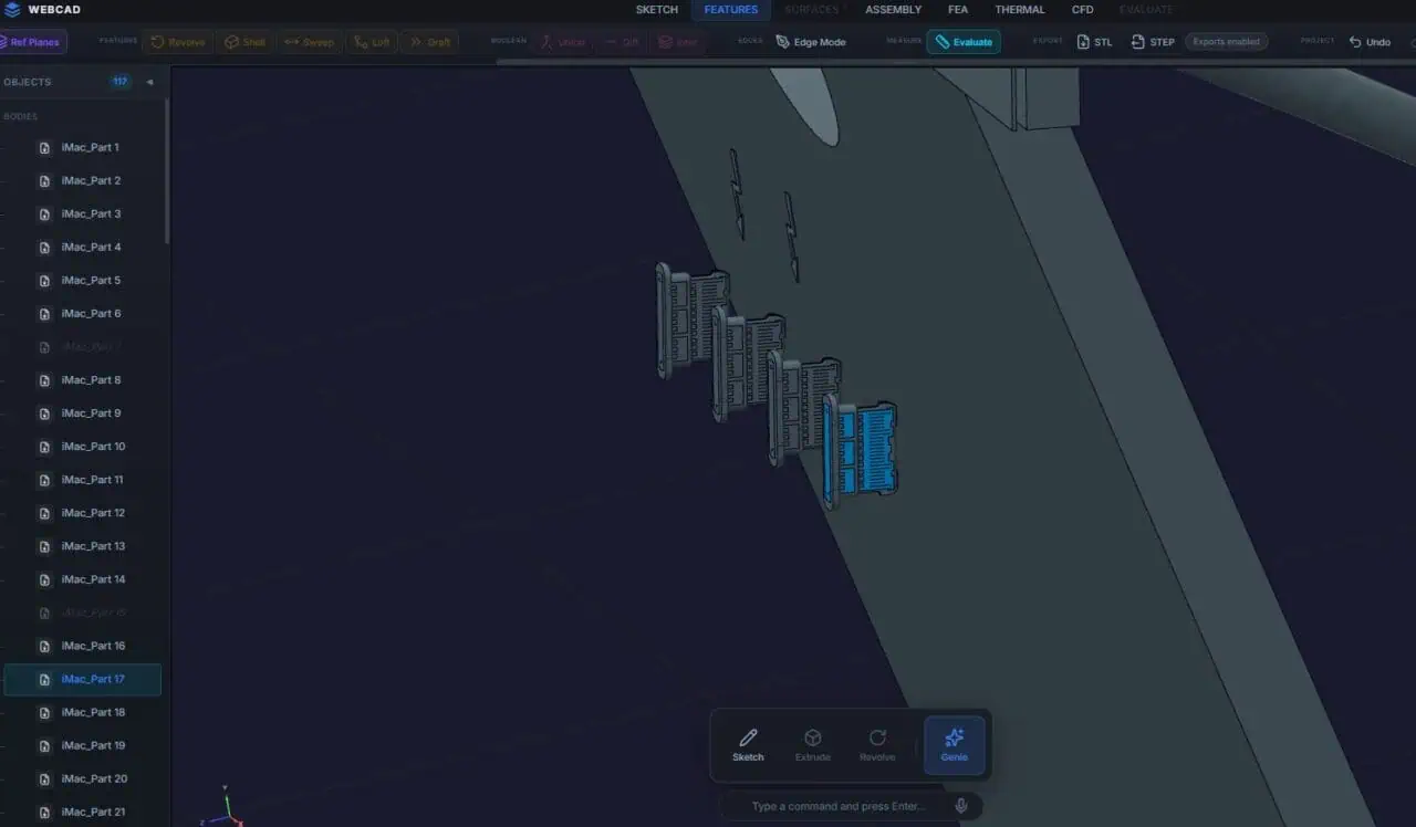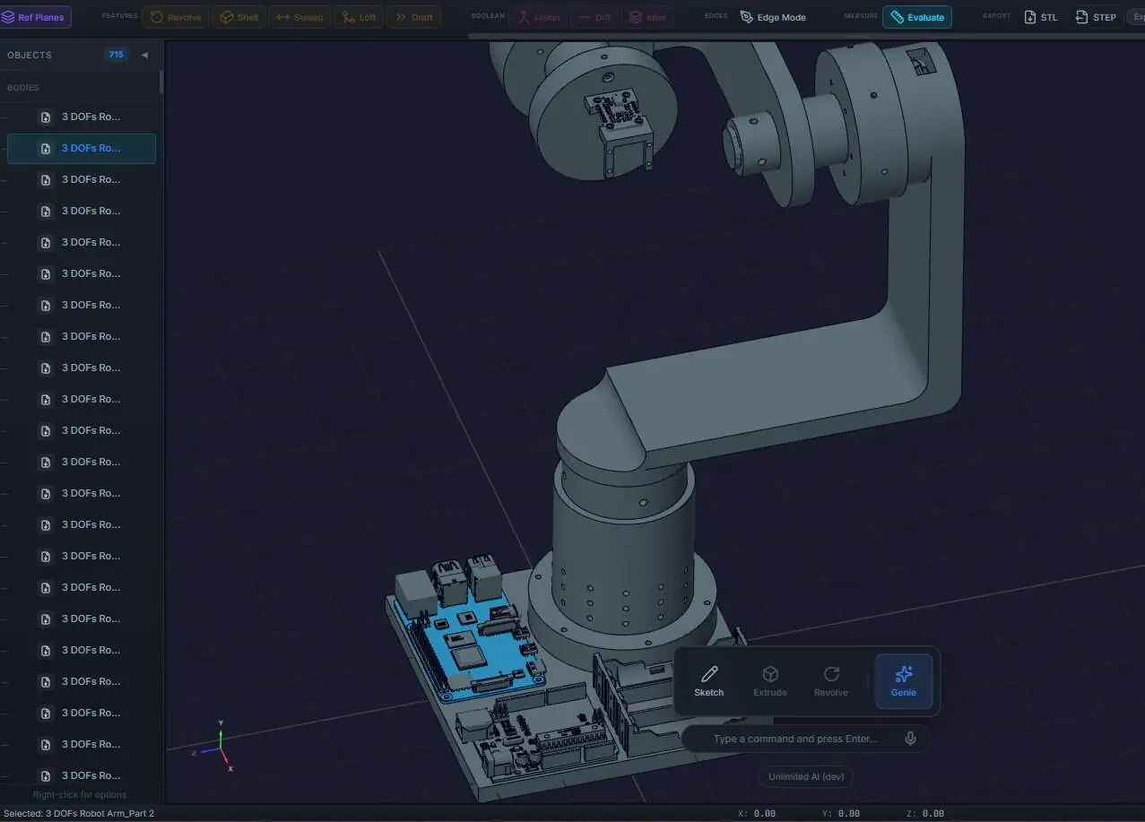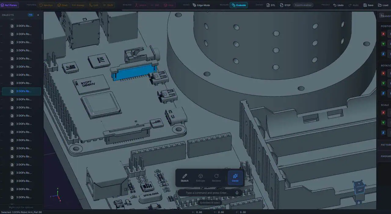 - STEPファイルの即時エクスポート:実運用可能なSTEPファイルを瞬時に生成。ブラウザから直接エクスポート可能。